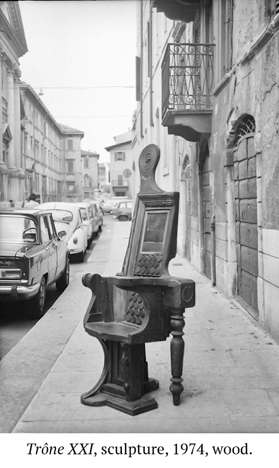 When he moved into an old house in Verona in 1971, Pucci de Rossi visited flea markets in order to furnish it. But rather than merely fixing the broken furniture he found, Pucci dismembered the pieces and rebuilt them. “I could have, for instance, changed the missing leg, but what I liked was to pick up artisanal work and give all those fragments a second life. All the elements that I used were already “used”, I wanted to give that “use” a meaning, and make sure my creations kept a function.” Without knowing it, he was laying the foundations of his first artistic approach, a work on memory, mixing forms and functions, art and furniture. Pucci took advantage of the randomness of the juxtaposed elements, developing a curve, improving a line. He magnified the vernacular and gave birth to a designer's dream: “sculptures to live with”.