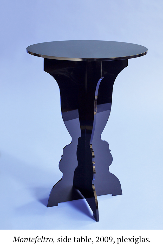 C’est en 1998 que Mathilde Baralhé, qui tient la galerie de mobilier Alice Alianca, rencontre Pucci de Rossi pour lui proposer une collaboration. Pucci, qui souhaite depuis longtemps développer un travail de plus large diffusion, lui propose de créer une société d’édition. Ainsi naît Made, qui produira en série des créations de Pucci spécialement conçues pour la marque, et reprendra quelques unes de ses pièces antérieures. Valet en résine, chaise médaillon revisitée, lampe et vases en porcelaine constituent les pièces emblématiques de cette collaboration à succès qui permît à Pucci de toucher un plus grand public.Les modèles présentés ci-dessous sont encore disponibles sur demande, n’hésitez pas nous contacter pour toute information.